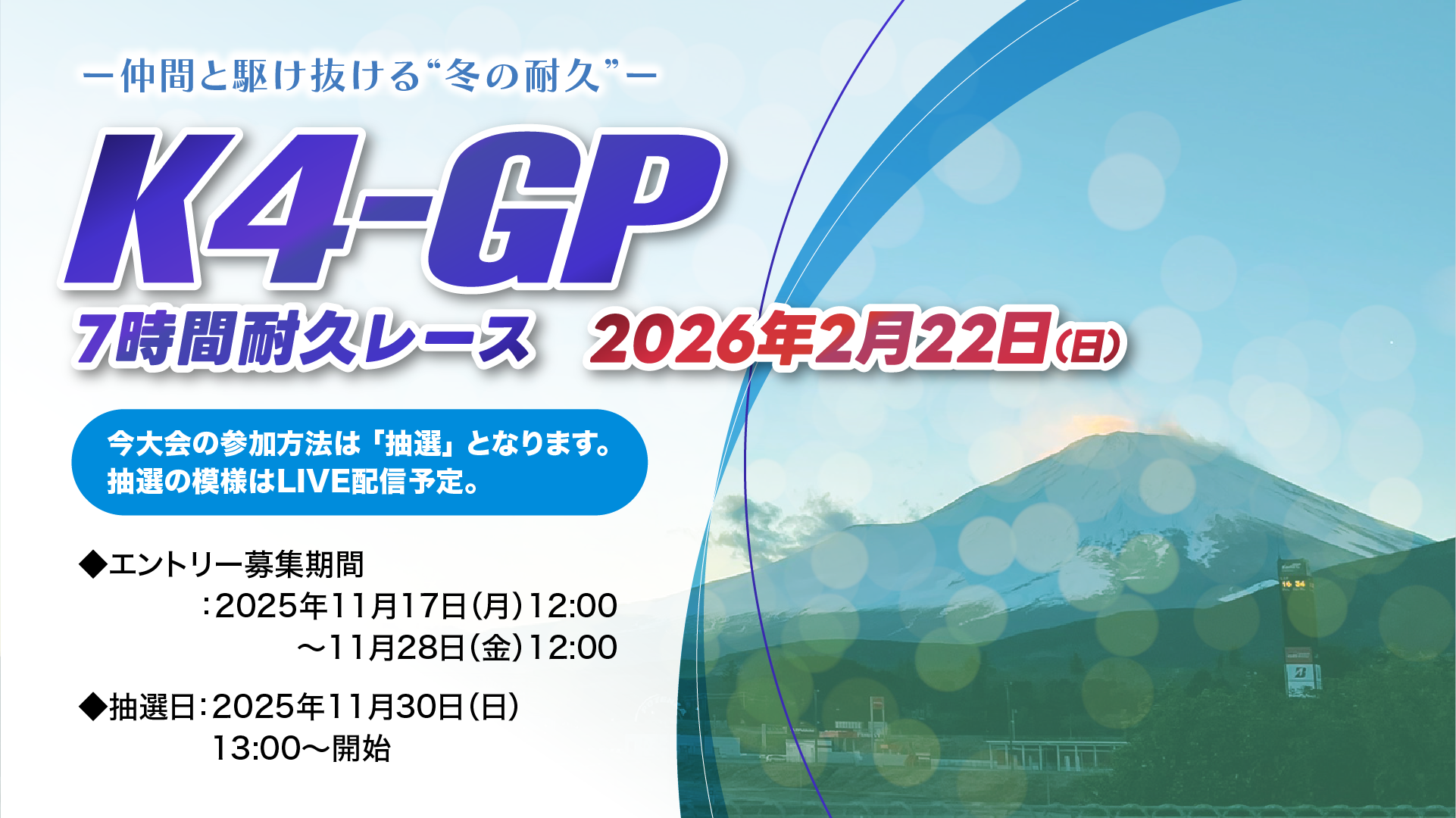 K4-GP 冬の7時間耐久 エントリー受付方法のご案内