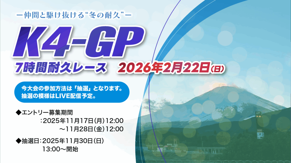 「K4-GP 冬の7時間耐久」へのご参加をご希望の皆様へ